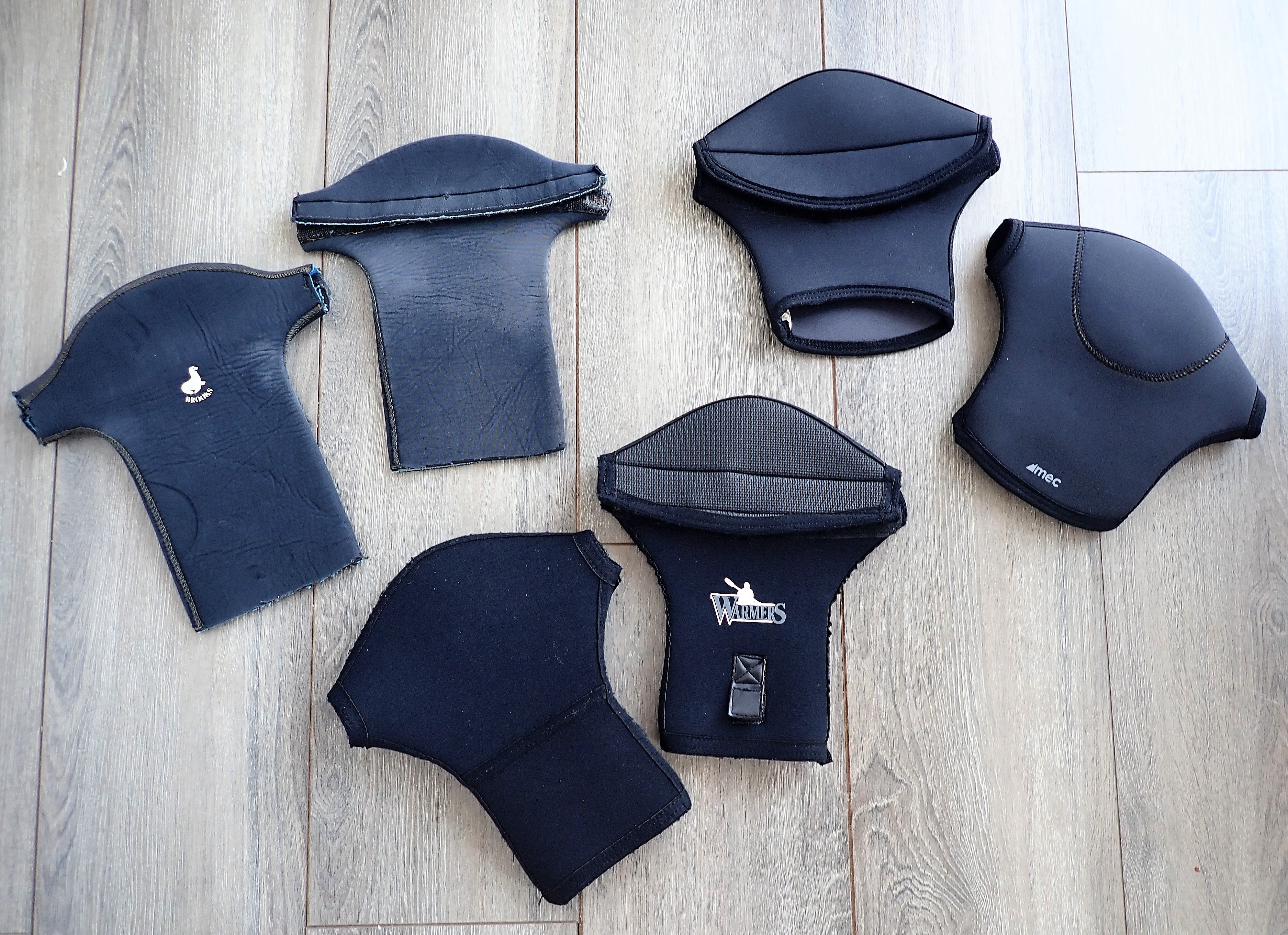 Pogies come in different materials, thicknesses, shapes, and cuff lengths. I use 3mm neoprene pogies, with a medium height cuff. Note that sliding glove-clad hands into pogies can be tricky, so consider purchasing a set with a wider cuff to make things easier.