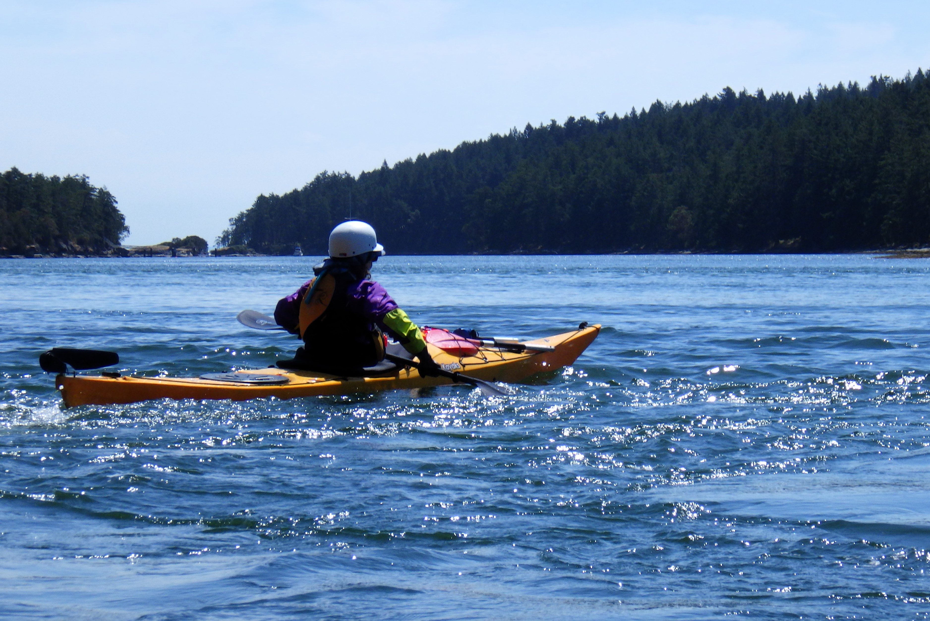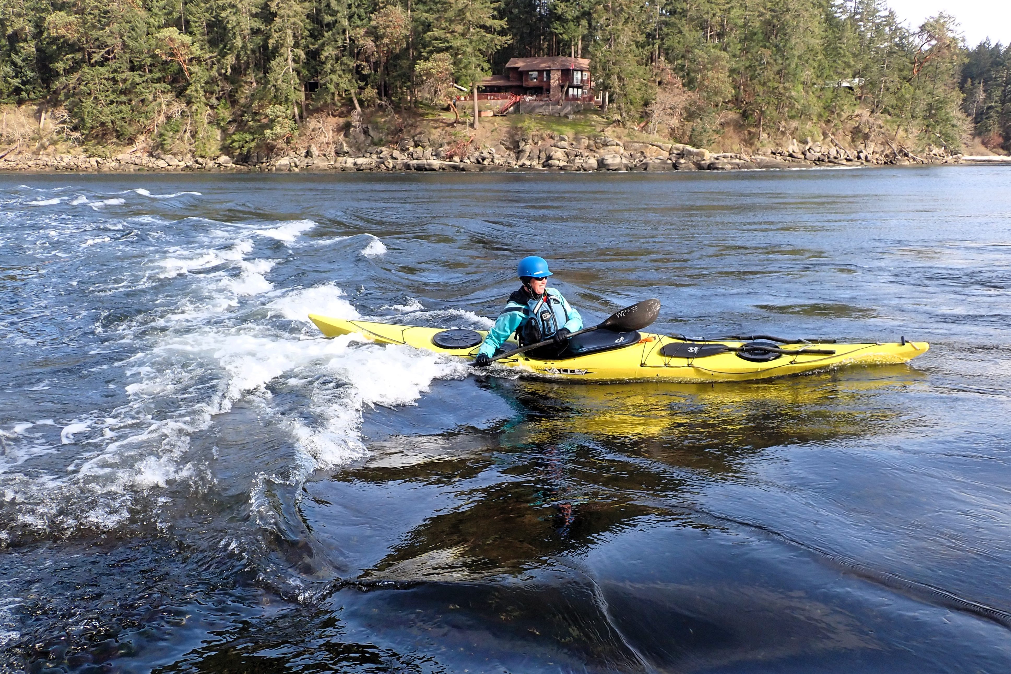 Learn how to surf your sea kayak on a standing wave created by tidal currents.