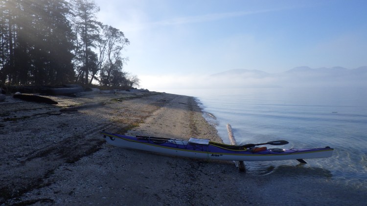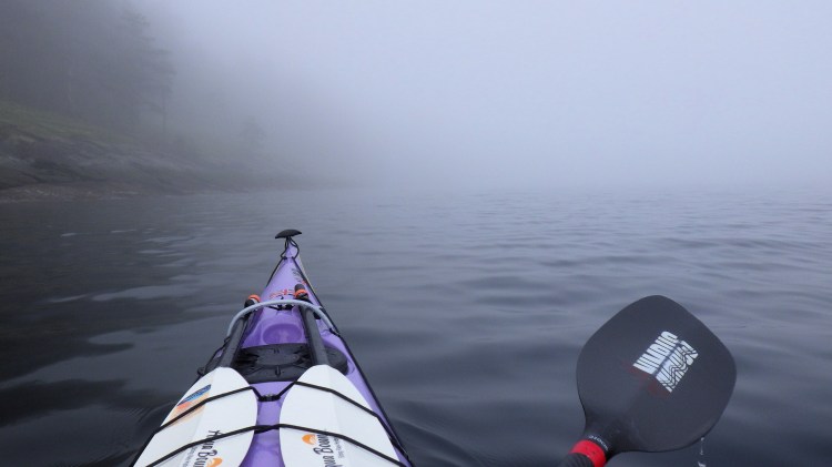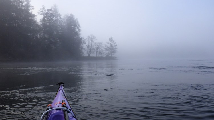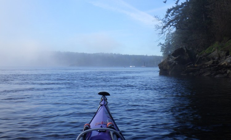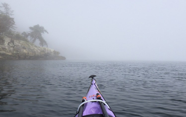 - Highlights: Completing most of this trip in thick fog, such that I couldn’t really see Porlier Pass, or the eastern shoreline of Valdes Island. (Guess I’ll have to go again!) ๐ซ Using my compass to navigate the short distance to Gabriola Island upon launching. ๐ซ Sunny, blue-sky break stop at Blackberry Point during a moment the fog lifted. ๐ซ Calm winds, low tide ranges and helpful, no-pressure current speeds. ๐ซ Watching a group of Steller sea lions swimming and breaching by me through the glassy waters. ๐ซ Hearing the wingbeats of sea birds in the quiet of the fog, and watching large flocks of sea birds wing by, low to the water, or take off across the water in a flurry of splashes. ๐ซ Completing this trip in less time that I thought it would take me. ๐ซ Finally ticking this one off my list — it has been almost a year in the making!